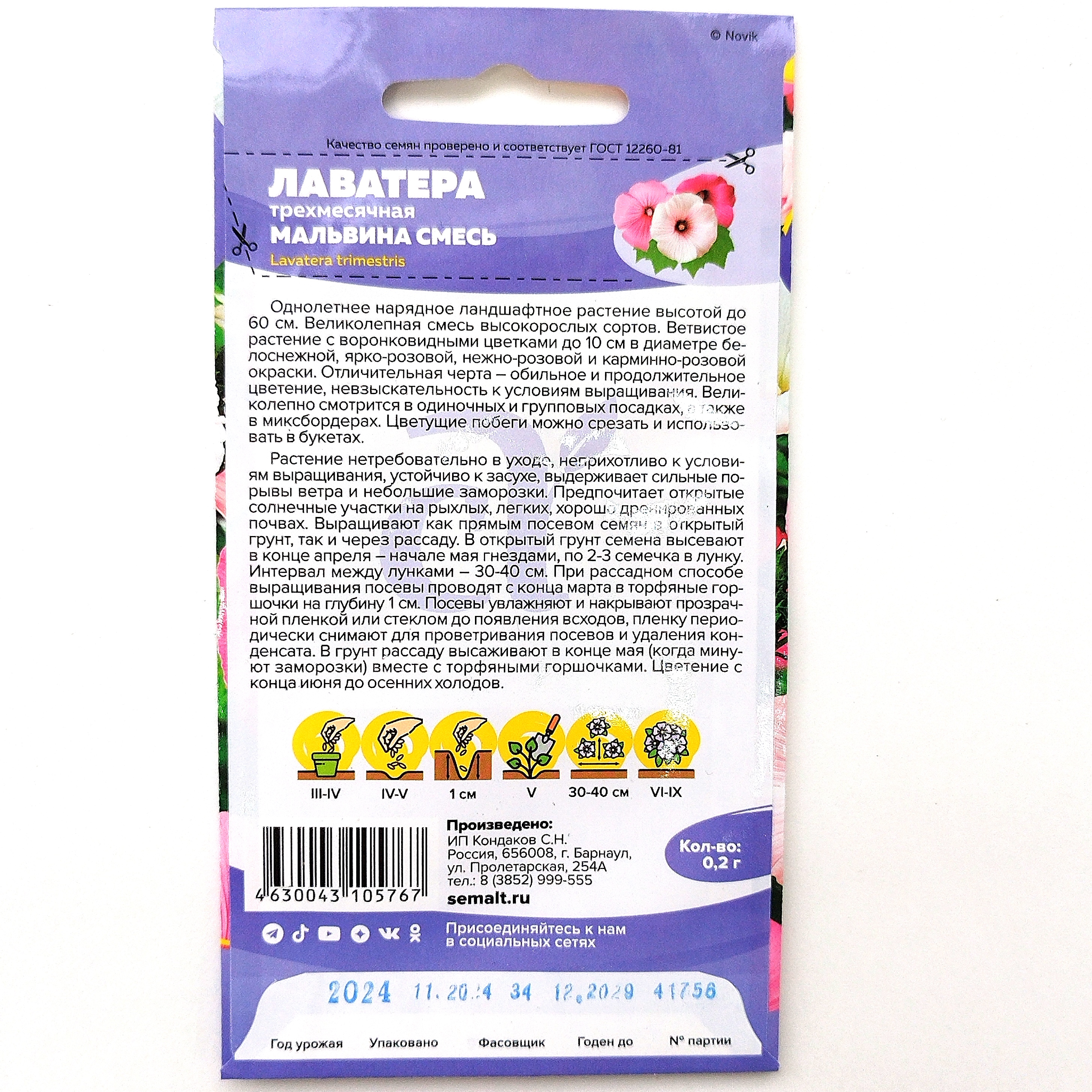 Цветы Лаватера Мальвина смесь ц/п Семена Алтая