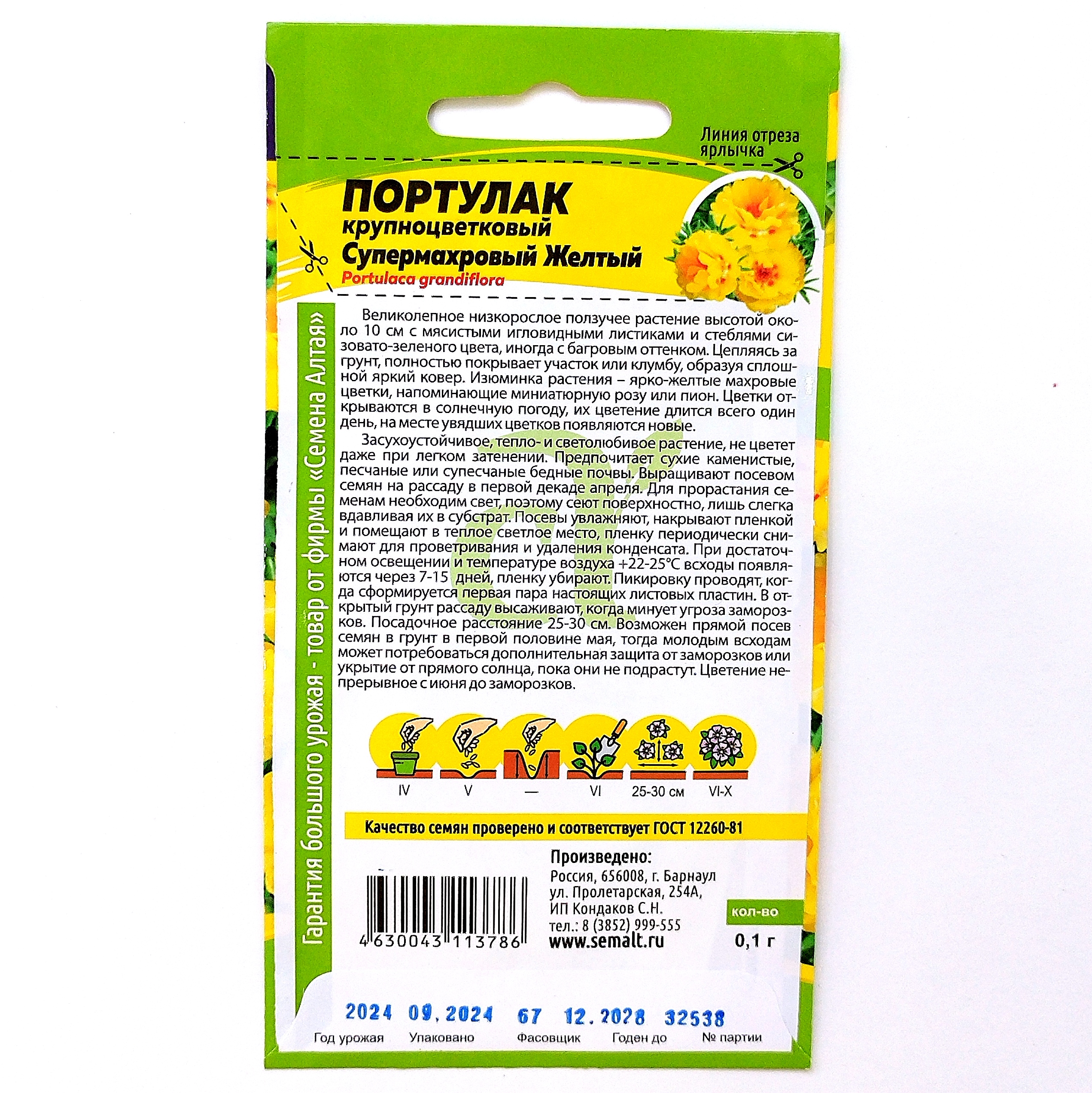 Цветы Портулак Супермахровый желтый ц/п Семена Алтая