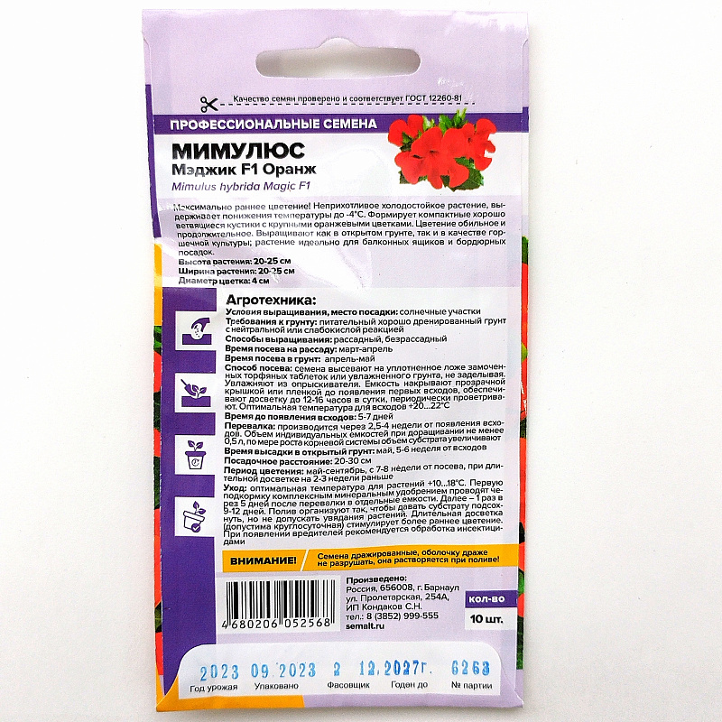 Цветы Мимулюс Мэджик F1 Оранж ц/п Семена Алтая