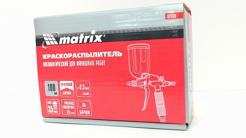 Краскораспылитель пневматический 100мл/верхний бачок/сопла 0.5мм Matrix 57318